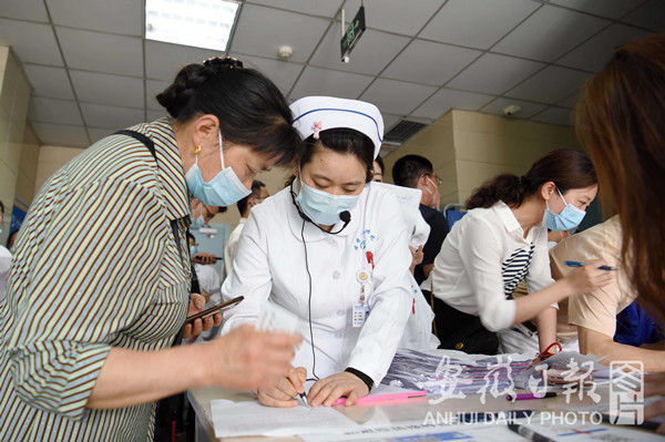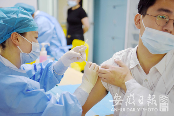 5月14日,在合肥安医大二附院,市民排队接种疫苗,现场秩序良好。