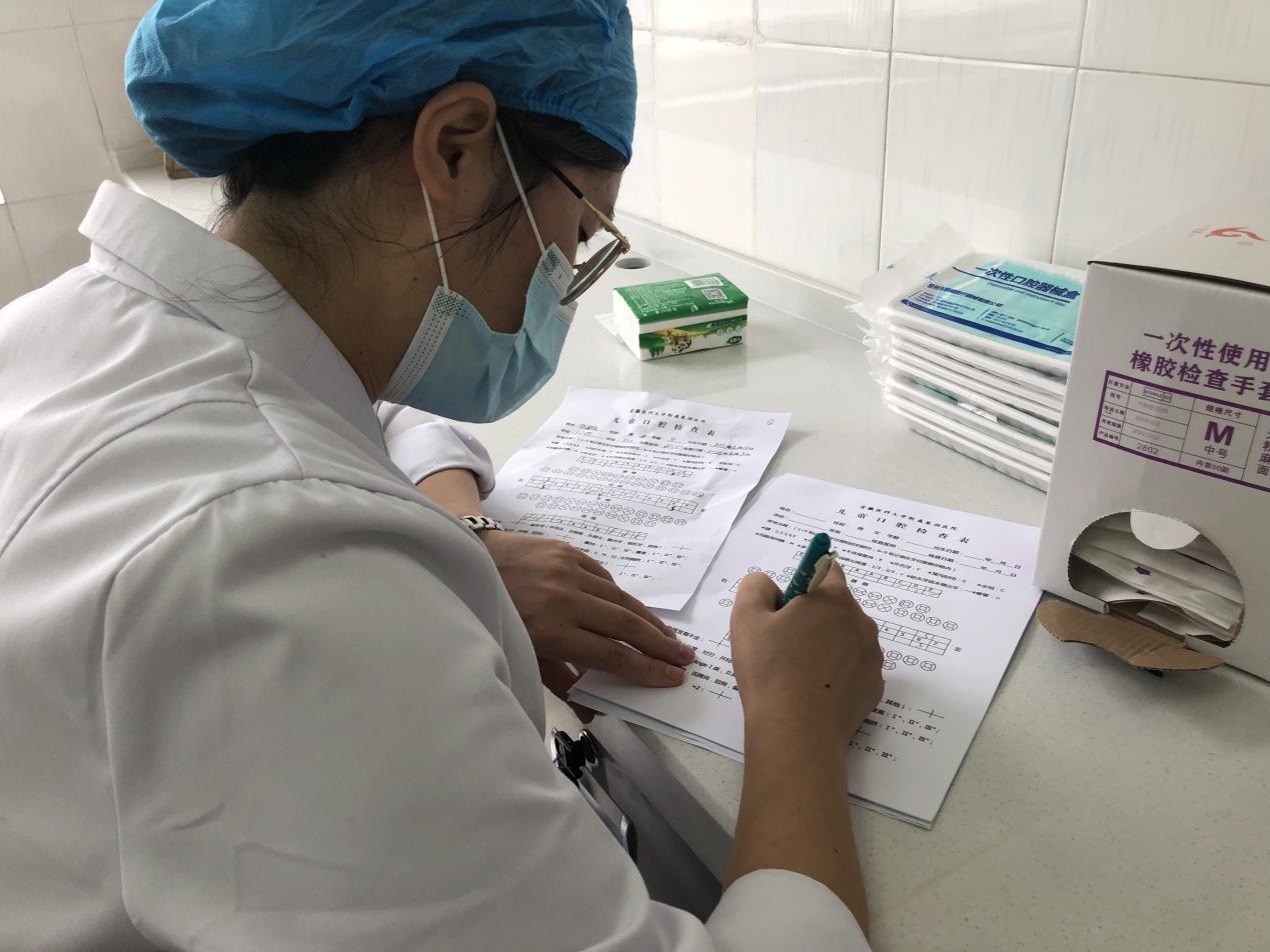 医生填写口腔检查表。安医大附属巢湖医院供图