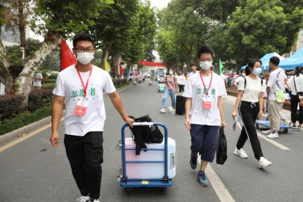 “同学,你好,我帮你拿行李。”“同学,你好!你是哪个学院的?我帮你把行李带去报到地点。”到达学校,身穿统一服装、佩戴红色胸牌的志愿者们在北门、图书馆门口、青年志愿者岗亭等校园各个服务点,热心地为新生提供托运行李、报到指导、问题解答等全流程服务。他们分工明确、各司其职,周到的服务留下无数温暖瞬间。