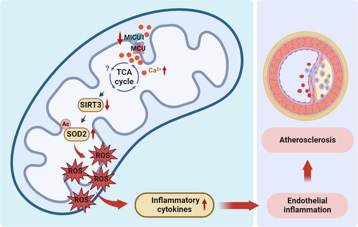 动脉粥样硬化性心血管疾病(ASCVD)是导致全球人类死亡的主要疾病。血管炎症不仅是ASCVD病理进程的早期独立风险因素,更是贯穿斑块形成、破裂及血栓形成的重要驱动因素。靶向血管炎症可降低高危人群的心血管事件发生率,在传统降脂疗法的基础上进一步降低心血管疾病的残余风险。作为血管炎症的起始因素与核心调控者,内皮细胞在炎症介质激活下会驱动循环系统中的炎性细胞向动脉壁浸润。因此,维持内皮细胞稳态有望成为干预血管炎症和ASCVD的有效策略。线粒体钙稳态是维持细胞能量代谢和生存的关键调节机制。精准调控线粒体钙稳态有望为多种疾病(包括心脑血管疾病)的干预提供新方向。MICU1是线粒体钙单向转运体(MCU)复合物的关键调控亚基,通过感知胞质钙浓度动态调节线粒体钙摄取,维持钙稳态与能量代谢平衡。然而,MICU1是否通过调节线粒体钙稳态进而影响ASCVD尚未见报道。