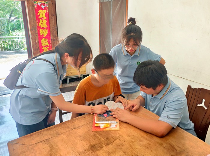 “三送服务”关爱特殊孩童。在指导老师和当涂县红十字会的协助下,实践团开展了事实孤儿入户走访活动,与家长深入交流,了解家庭困难,并为孩子们送上慰问礼品。现场还通过趣味问答和情景模拟,为孩子们讲解了青春期生理卫生知识和自我保护技巧,并为年迈的监护人提供了血压检测服务,宣传了与孩子沟通的技巧,助力家长更好地参与孩子的成长教育。