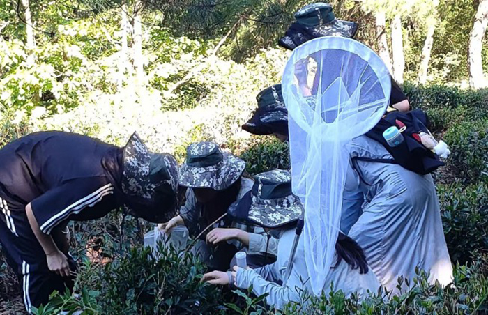 本次野外实习安排了植物标本采集、昆虫标本采集、鸟类观察三个实习内容。植物学实习期间,学生随带队教师沿路辨识植物,教师细致地介绍植物的分类特征、生长习性和识别方法等知识。过程中,同学们主动参与植物标本的制作,对采集到的标本进行整理、压制与鉴定,让自己对植物学知识的理解和掌握更为深刻。