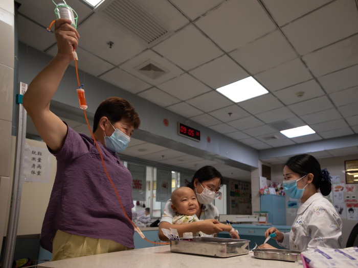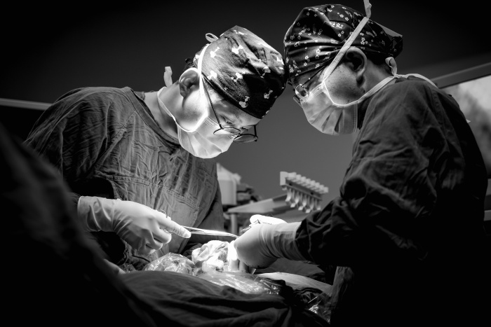 当天,7位签约摄影师兵分多路,分组在儿科、手术室及实验室等不同区域,开始了他们与生命对话的视觉探索。在儿科门诊,镜头记录下医生蹲身与患儿平视交流的温情;在检验科实验室,微距拍摄展现了检测员被护目镜压出的红痕;而在手术室,自动门开合间,摄影师们定格了刷手服后背的汗渍、护目镜后的专注眼神。