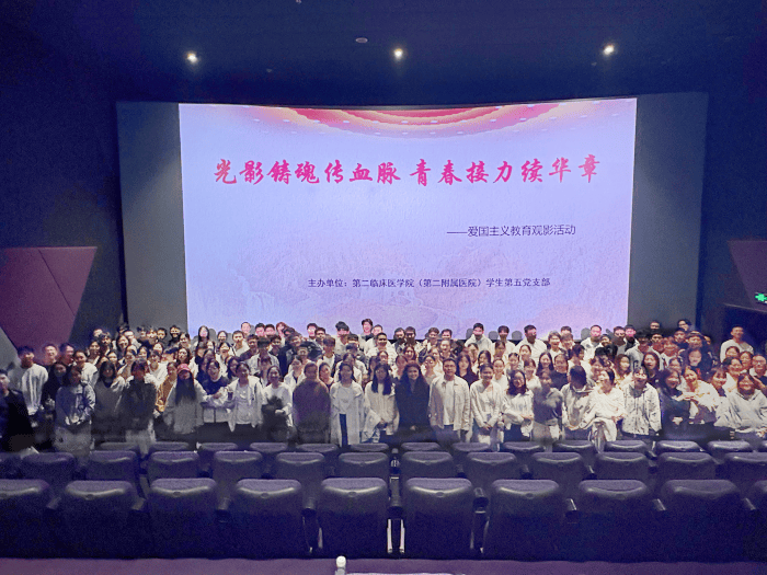 10月11日下午,第二临床医学院组织400余名同学集中观看爱国主义题材电影《志愿军:浴血和平》,庆祝中华人民共和国成立76周年,弘扬爱国主义伟大精神,赓续百年红色血脉。